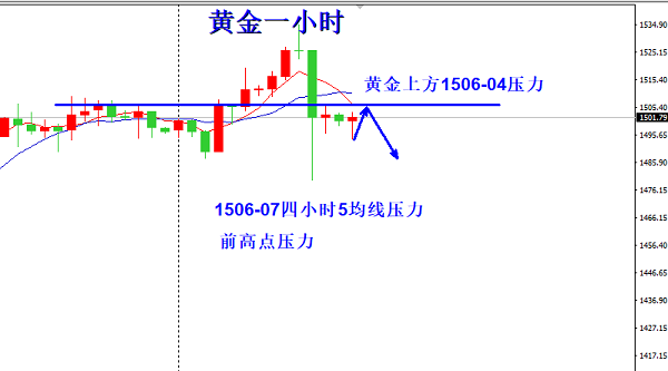 操作建议:黄金上方触及1 505-07空,止损1511,目标1493.