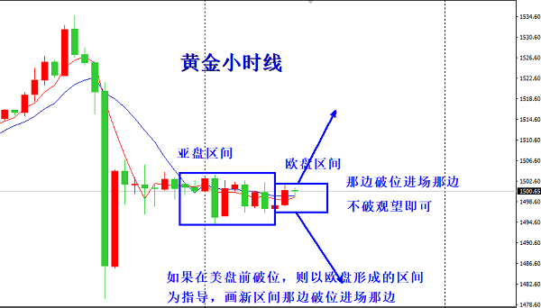目前就是这个震荡行情,震荡行情我们就震荡对待。首先做盘面剖析,亚盘最低1494,最高抵达1503.5,整个亚盘在9.4美金的区间中波动,而这唯一的波动也产生在早盘之中,全天都在消磨人们的耐心,而欧盘区间到目前为止更小,上方下方1497,上方最高抵达1502整个欧盘5美金的行情,经过上面的复盘陈述,相信关注欧阳的都以明白什么意思,明白晚间该如何布局。此行情走势就是一个亚包欧走势,亚盘震荡区间大于欧盘震荡区间,所以晚间我们就需要以欧盘的震荡区间为参考,那边破位进场那边,做区间的跟随单子,目标利润也是5美金,如果在区间之中我们观望即可。此亚包欧操作手法,利润虽小,但是准确率是极高的,一般是用仓位弥补点位,所以晚间黄金一旦破位仓位可以放正常仓位的二倍即可。