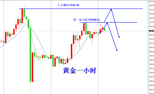 操作建议:黄金1524轻仓空,1532-34加仓空,止损1536.5.