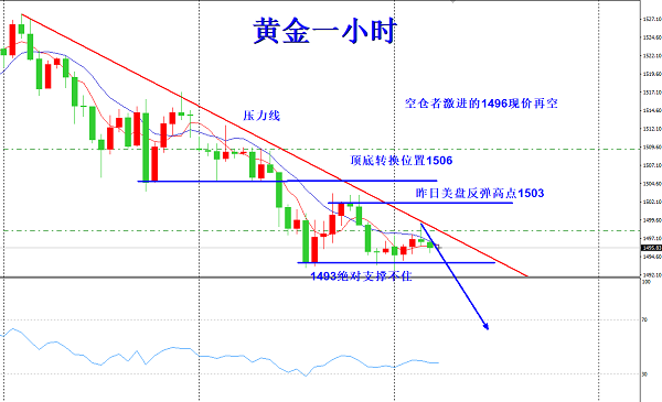 操作建议:黄金回调1500-1499空,止损1506.5,目标1480.