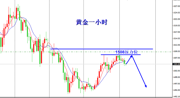 操作建议:黄金反弹1508-10空,止损1515.目标1493.