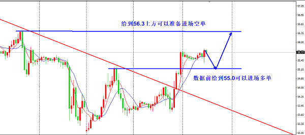 数据公布后给到56.3上方可以进场一个空单,止损56.9,目标55.00