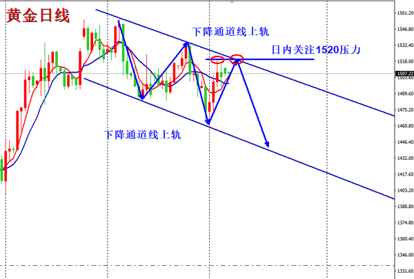 操作建议:黄金回落1503-1500多,止损1495,目标1512,破位看1519.