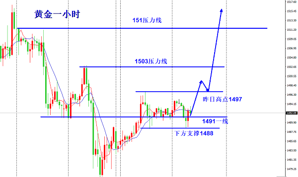 操作建议:黄金现价1492~90直接进多,防守1485,目标1503,破位看1512。