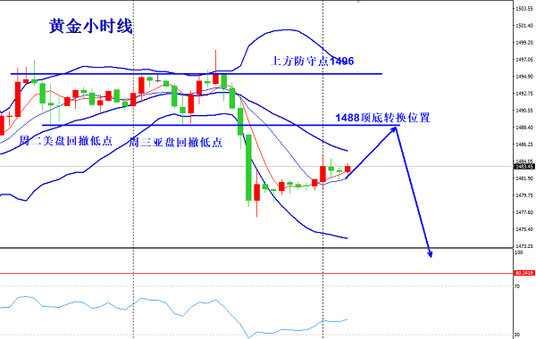 操作建议:黄金反弹1488~1490做空,止损1496目标,1475。