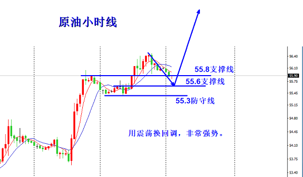 原油现价55.8或55.6多,止损55.3,目标57.4.