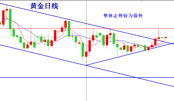 早上好,新的一周全新开始,现在开启我们本周的第一篇早评。黄金在上周四打破下降通道线上轨之后,周五早间回踩确认,直接开启了一波拉升,最高抵达1518附近,如此强势行情,彻底让做多的疯狂,让做空的胆怯。目前下降通道线已经破位,并且得到了回踩,那么操作上我们就以逢低做多为主。在下降通道线内形成的震荡三角形,自9月1号形成以来,10月底破位,有快两个月的时间都处于震荡三角形之中,正所谓“横有多长,竖有多高”,震荡时间近两个月,那么突破之后带来的单边也就会弥补两个多月震荡的沮丧,所以目前我们不看好黄金再次跌破下降通道线上轨支撑,再次进入下降通道线之中,所以靠近下降通道线上轨附近我们有理由去进场多单操作。
