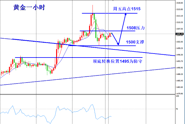 操作建议:黄金回落1500-1498多,止损1494,目标1515,破位直接看1535.