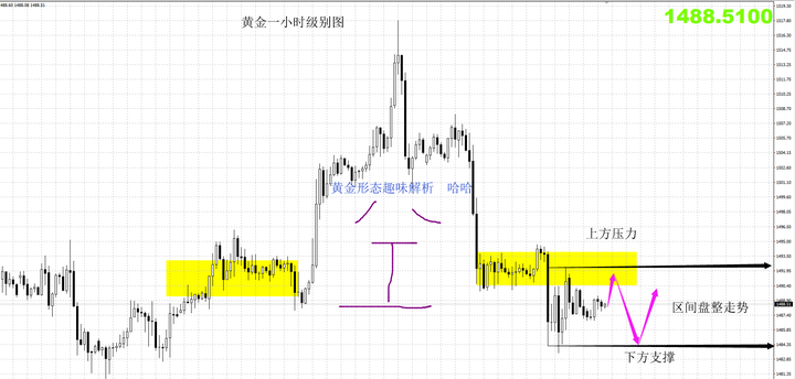 说了这么多心声,接下来就简单说一下行情技术面解析.黄金昨晚再次由于日线级别黄昏之星的想要再次下跌一波,这也是在预料之中,行情下方测试1483位置不破,尝试做多依旧没错,因为黄金日线级别起涨位是在1480这里,所以1483上方做多,止损1483,最深处就是1480而且中间还有加仓位!然而今天对于黄金的操作就是不去布局操作,今天数据日,行情早盘以及欧盘也不会有太大的幅度,所谓煎熬不胜不做!此时在1488受上方60日均线强烈压制,下方又受1483支撑,所以此时选择持币观望最为合适不过!好今天对于黄金就说这么多,一切点位等晚上!再见,我依旧是你们最可爱的博文老师!