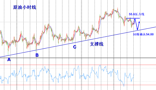 原油反弹55.4~55.6空,止损55.9,目标54.5/54.0。