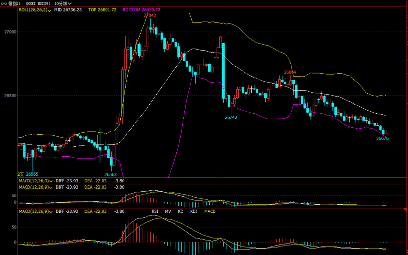 即操作思路上看好,今天是一个标准震荡区间行情,先涨后跌局势,上午主多思路,后续主空思路,预期会在正常的日线中上轨试探性破位走势。上方重点关注日线上轨27200一线有效压力位,下方重点关注前期有效支撑26600一线有效支撑,操作时注意严格控制风险,谨防高低位追单式操作,行情振幅区间大,注意做好风险防范。