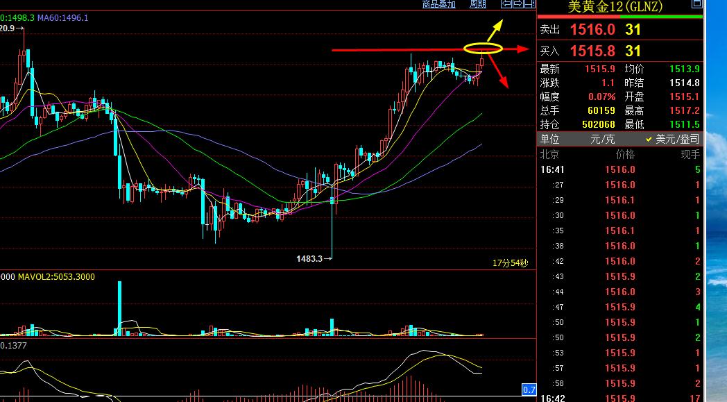 美黄金日线,星期三以前一直持续处于震荡通道式下滑了2个月,昨天凌晨美联储公布降息25个一点,瞬间下到1483附近,随后反弹,这反馈了一个问题,美国经济也是出现下滑的迹象,不得不通过降息,来放宽货币流通。没公布之前我在下方1280附近布局多单,上方1503破位看1517,行情也是如预期出入不大。目前1517.5上方压力仍然存在,不破多单入场,破位反手多单的一个策略,具体观察破位技术点位。目前短时间行情走势不明显,市场也在等待今晚美国10月季调后非农就业人口,非农前行情也不会有太大波动。下方主要支撑点仍然关注1503,回调下方多单入仓。