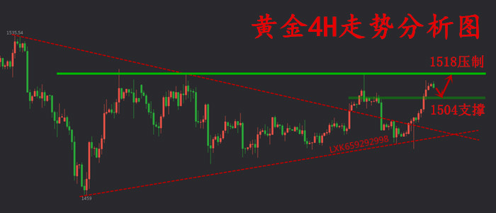 操作建议:黄金拉升1516空,保护1520,目标下看1504,破位看1496;黄金回落1504多,保护1500,目标上看1516,破位看1520即可!