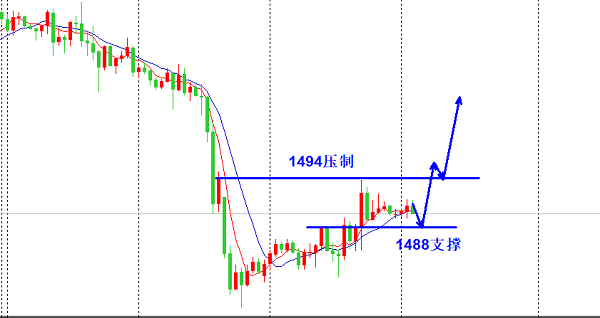操作建议:黄金回落1489-88多,止损1484,目标1498/1506.
