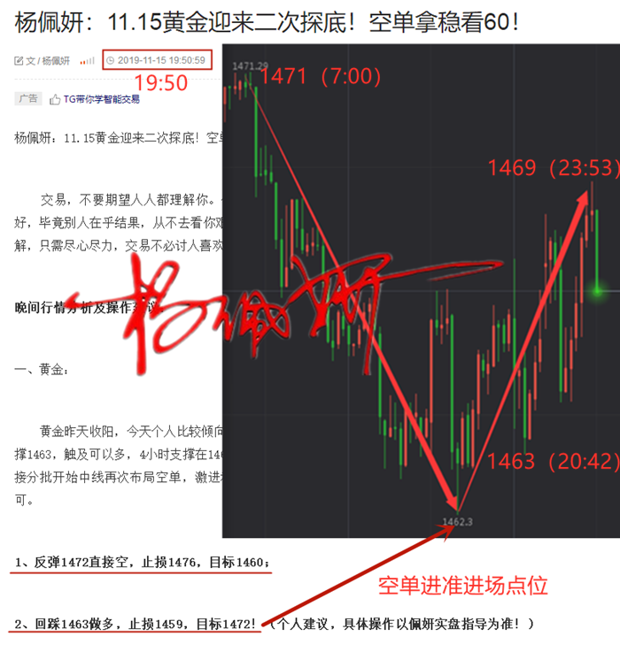 近期行情经历了一波触底反弹,一度跌破1450到达1445附近,后受美国总统有关贸易谈判的言论以及弹劾总统的消息刺激,现货黄金走高,佩妍自行情下探1450后一直在强调回踩做多,开启中线布局,行情也很配合给到了几次抄底的机会,近20个点的利润稳稳收入囊中!看对了方向盈利是必然!为了帮助在投资道路中备受困扰的朋友,佩妍每天都会在朋友圈免费公布当天的操作策略,凡是加到佩妍的朋友都可以免费获取!