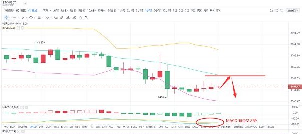 操作建议:比特币8550附近做空,止损8650,目标8450--8400,破位持有;