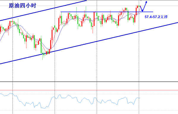 原油回踩57.40-57.20多,防守56.8,目标57.8-58.9.