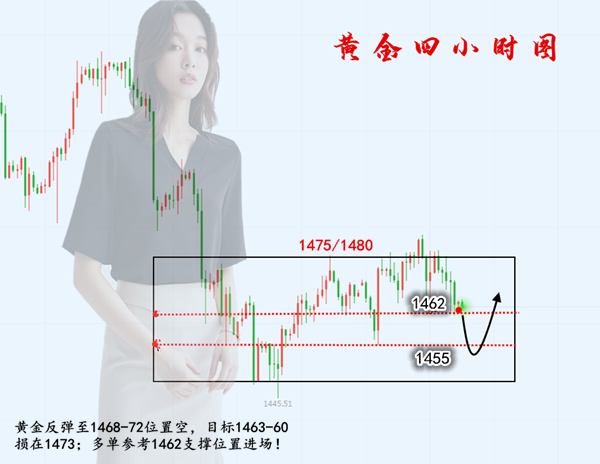 2、黄金反弹至1470-1473附近做空,止损4美金,目标1460-1463;