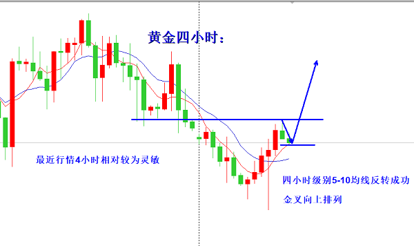 黄金从4小时来看,昨天开盘至收盘几乎全线收阳,只有在凌晨时分收收盘阶段有小幅回调,昨天由于一天收阳,所以也就导致了5-10均线掉头,目前又形成了5-10均线金叉形成,勾头向上的走势,这也是自1479下跌至1450这波下跌行情中的第1次5-10日均线同时掉头向上的走势,最近一段时间的行情,我们可以发现以5-10均线为依据是相对比较灵敏,不至于在操作之中比较滞后。所以今日我们依旧以四小时5日均线为支撑寻找,点位去进场多单。