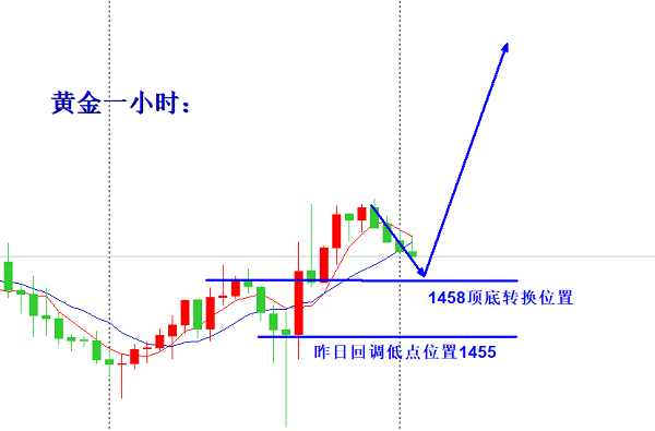 早间操作建议:黄金现价1459-58多,止损1455,目标1465/1472.
