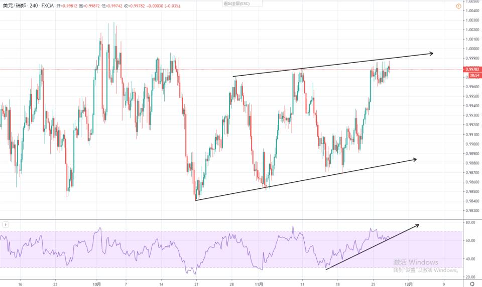 今日在盘面中寻找市场的交易机会,因为个人平时偏好交易黄金,同样的市场跟黄金相互关联的货币就是瑞郎和日元。因此今日发现瑞郎的交易机会。