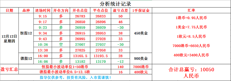 12.13号恒指技术面分析: