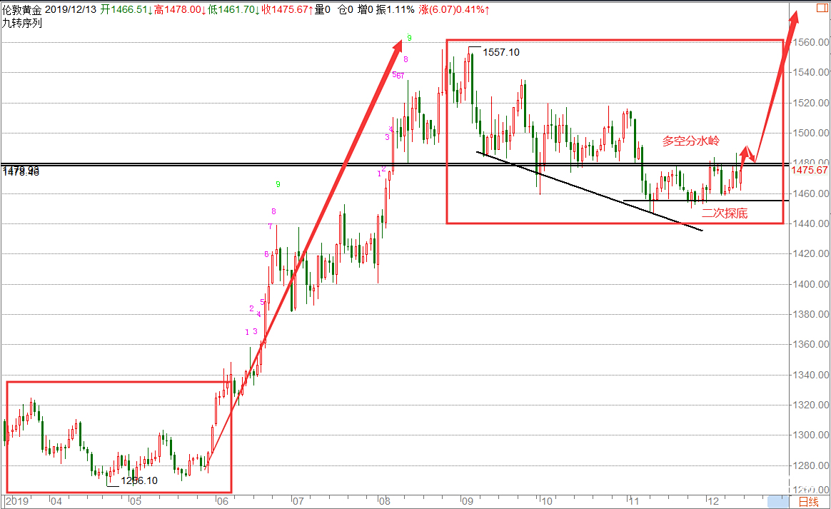 黄金回顾:黄金上周的行情整体上仍然是没有一个明确的方向出来,但整体的节奏是没有偏离我们在之前文章中给到的思路,黄金我们一直在强调的做双底看突破的思路,目前依然是没有问题的,周五我们在文章中是明确给到大家在1465-67这个区域先轻仓多,能到1460-55区域继续加仓多思路,昨天的行情是比较配合的,基本按照剧本在走,那么本周的黄金我们应该怎么操作呢?