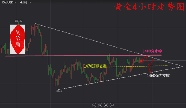 4小时走势来看,布林带处于收口,MA5日均线和10日均线开始往下发展,MACD绿色动能住持续增长,日预期行情还会震荡运行先,但时间的推移会使得短线结构重心下移,综合来看操作区间上,下方着重关注10、20日线支撑1470-68,上方则继续关注1480压力测试,虽然重心已经下移,技术层面再测1480的概率有所减小,但也要防范基本面可能会给行情带来异常走势的风险。