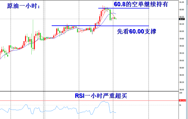 原油60.5-60.8空单持有,止损61.1不变,下看即可。