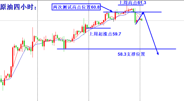 今天如若反弹给到60.6~60.8一线,我们依旧进场空单,为什么我们要在此位置进场空单,因为60.6是上方4小时时10均线的压力位置,而60.8是之前两次反弹的高点位置,所以我们以此为压力进场空单,止损我们还将放在61.4的上方,目标我们先看58.3。我们本次空单打算波段持有,下跌目标看向56.2附近,在周三EIA数据公布之前,我们就已经给出布局,我们目标看的是相对比较大,4.5美金的目标,所以目前空单即可。