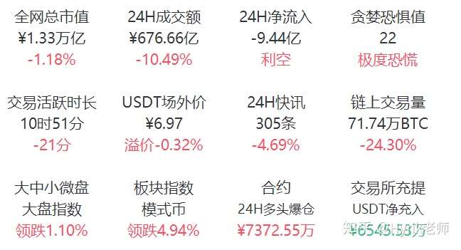 大家好,我是紫狮财经CEO,Hyrik老师 。今天我们直接进入行情。目前从基本面来看,整个大环境都不是太好,一个字,缺钱,除了那几个突出的互联网企业稍微好一点外,其它很多行业目前都处于缺钱状态,虽然说区块链和数字经济是新兴产业,是趋势,但是本质上还是没有实质性落地应用和没有具备自己造血能力的早期产业,所以,目前连那些自带造血能力的产业都十分的缺钱,你想要币圈一下子好到哪里去是不现实的,可能性也不大。于此同时我们也可以从一些数据上来看看: