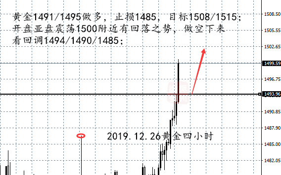 黄金1491/1495做多,止损1485,目标1508/1515;