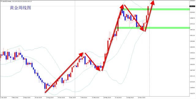 本周黄金上涨的主要由两个因素主导。一,央行降准释放流动性、美日贸易协议达成、以及第一阶段贸易协议可能在1月签订的预期影响,全球股市大幅的上涨,投资对于全球经济增长恢复信心,大宗商品的攀升,支撑黄金上涨。