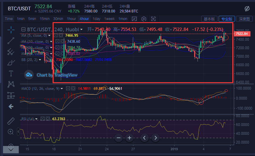 四小时级别上看。行情运行于布林带中上轨,布林带开口向上打开,MACD运行于零轴上方仍然处于金叉状态,RSI处于走平的姿态,5日和10日均线向上延伸,多头还是占据主要能量,再加上美伊战争的消息恶化对数字货币有一定的避险支撑。操作上先短线对待即可,盘中若有明显突破方向再顺势跟进。