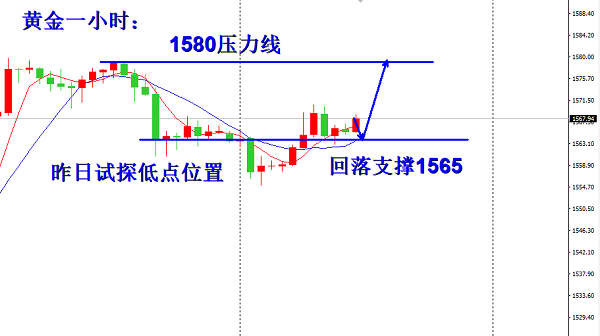 操作建议:黄金回落1565-63多,止损1560,目标1573/1580.