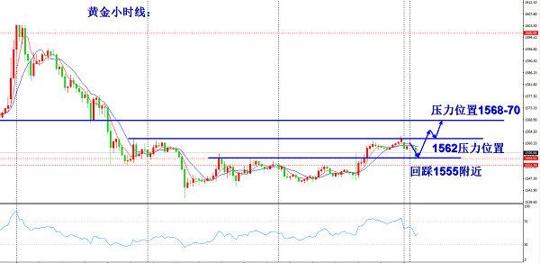 操作建议:黄金早间现价1556-1555直接多,防守1550,目标1562/1570.