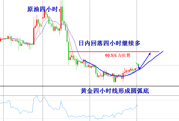 原油回落58.8-58.6多,防守58.2,目标59.6-60.5.