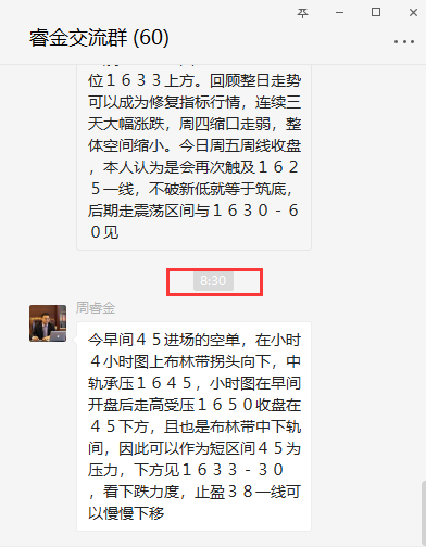 关注周睿金的朋友都知道,黄金昨天收获19个点利润,周三42个点,周二45个点,这些单子都在微博,各大财经专栏同步更新!周五了,周线,月线收官,黄金昨天美盘就已经开始作妖了,今天估计会更加的变幻无常,操作上一定严格带好止损。对于区间震荡,很多朋友找不到准确的点位进场,都知道低位做多,可是自己却陷入那个是低点的问题,看到创新低自己也不敢进场,因为担心还有低点,等到反弹了要么就追高了,后悔了,要么就认为可能只是反弹永远给自己不确定的因素,所以徘徊一天没有进场,后续错过行情,只能捶胸顿足了。周睿金永远给你清晰的点位,明确的方向,实时的现价单,多就是多空就是空,留意后续内容不服就是干!