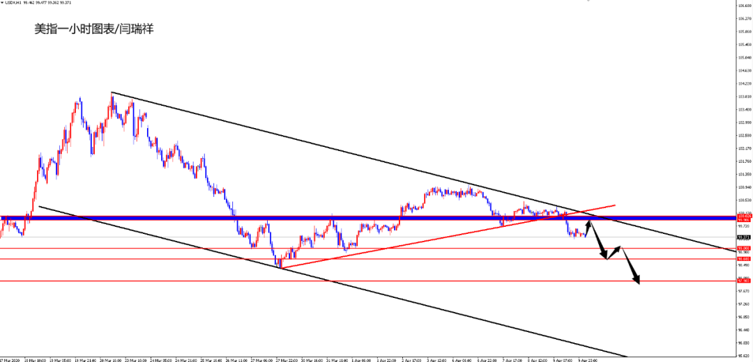 美指99.90-100区间直接空 防守5美金 目的地99.10-98.70-98