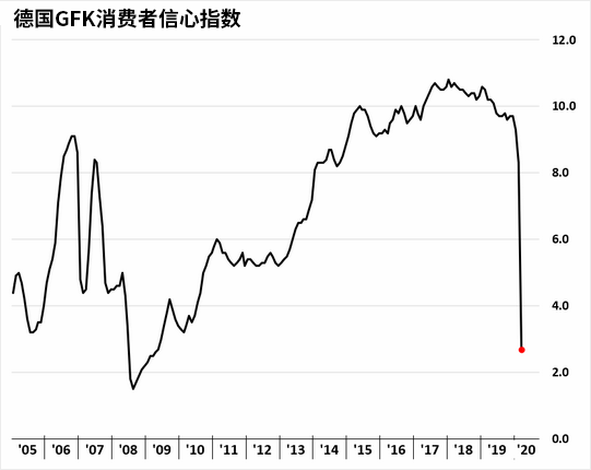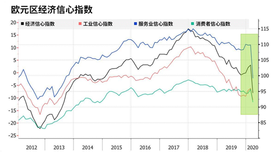 欧元区的经济活动状况也跌入冰点。数据显示,GfK德国消费者信心指数和法国INSEE产出预期都大幅下滑,作为欧元区经济的两大驱动轮,德国和法国的负面消息频出使得今年的欧元区经济前景将十分悲观。目前疫情依然在欧元区肆虐,大量企业暂时关闭,且短期内恢复的希望愈发渺茫,欧元区经济信心指数3月份录得纪录最大降幅。