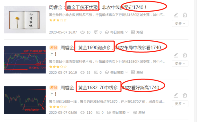 黄金周三,周四周睿金团队都是看好多头,虽说黄金一直区间震荡,但是这个震荡修复在周三就已经开始变味了,开始震荡修复上行,虽然上行的力度有限,慢牛上涨,但是多头趋势不曾改变。周睿金团队再次不断在全网公开预热,非农给出提前布局,依托1680中线多看涨,在昨日周四的文章思路中,更是给出1685-1690多单入场的现价单,黄金午夜最高拉升至1621.95一线,如果是做短线的朋友,从1685-1690多到1620一线,这其中有多少利润你们自己去换算!尽管满市场一偏唱空,唯有周睿金团队坚定低多看涨思路,虽然做多看涨过程一路被质疑,但是最终利润说明了一切!众人唱空唯唯我多,1685-90一路多一路狂歌数钱!