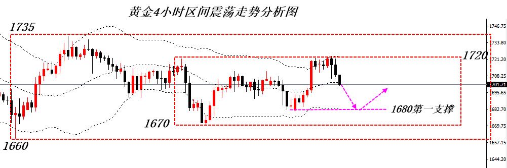 黄金开盘1701小幅走高,属于反弹修正,上周ADP和非农利多不涨,但这个利多从1690-1720基本已消化,也就是说周五非农都没能把金价二次抬高,对于后市暂时来看没有更强劲的数据抬高金价。