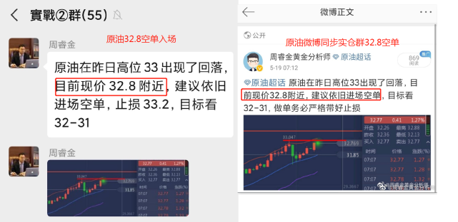 都说早期的鸟儿有虫吃,周睿金团队再次用利润为大家证实了这句话,早间北京时间07:03分,周睿金在实仓交流群中给出黄金1733现价多单入场提示,随后又在07:07分给出原油32.8现价空入场提示,黄金在1740提示做减仓处理,原油在31.8提示减仓处理。以上两单现价单均在全网公开,在FX168专栏早评《周睿金:黄金1733已接多继续看涨,原油32.8空!》直接在标题中明确给出现价单进出场点位,当然文章有延时,审核出来都是半个小时甚至2个小时以后的事情了,但是在周睿金新浪微博,以上现价单都是实时同步更新,故此想体验周睿金团队实力,指导模式的朋友,移步前往周睿金新浪微博即可!