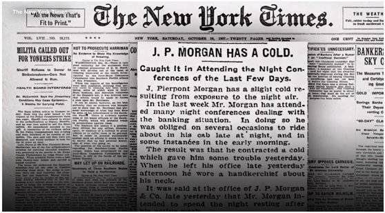 几乎是凭借一己之力挽救国家于水火之中,对于美国人来说,皮尔庞特就是民族英雄,这是他和他的摩根帝国最荣耀的时刻,这时候连皮尔庞特感冒了都是一条大新闻,能够登上纽约时报的头版。