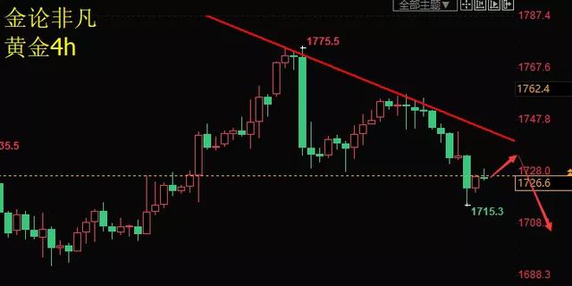 黄金四小时3点连成趋势线,上周快速拉胯行情坑了不少人,目前看下图行情比较明显,行情方面依旧以做空为主。