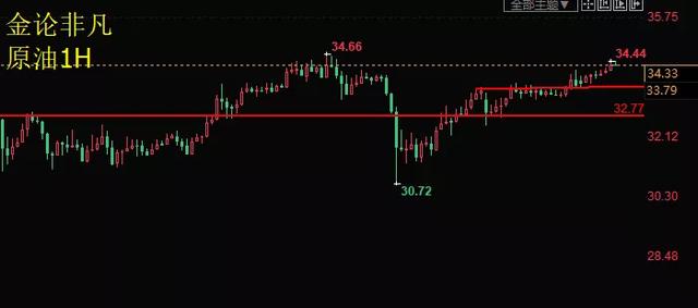 原油激进34上方轻仓入场,止损0.3,目标看35