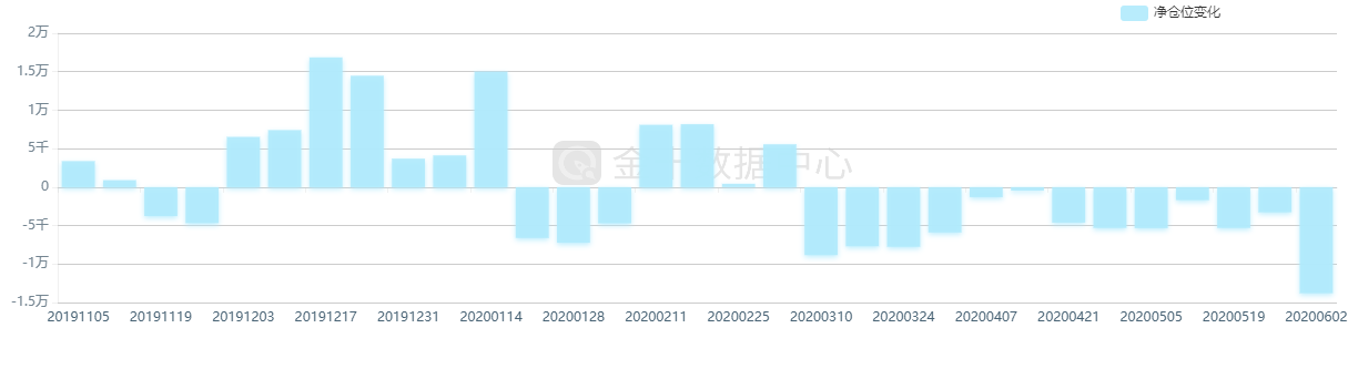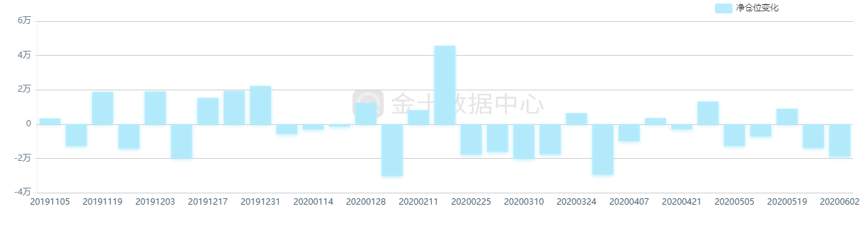 上周受重启经济和经济刺激预期驱动,乐观情绪回归,黄金等避险资产遭遇剧烈抛售,CFTC持仓报告显示,金市的看涨情绪有所降温:截至6月2日当周,投机者将黄金净多头头寸减少12346手至136568手,为连续第二周减少,并且降幅达到3月底以来最大水平。