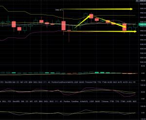 4小时图上看,币价在跌落至9100后反弹,之后的趋势一直在上下插针,区间试探,目前来看上方抛压还是很严重。币锦峰认为币价有进一步偏低走势在反弹的趋势。目前布林带呈向下缩口状,币价在布林带中下轨运行。MACD双线呈小金叉在0轴下方运行,RSI在弱势区运行,KDJ则在强势区运行。