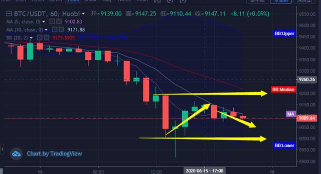 目前BTC从四小时线来看今日下午最低跌8915目前在9100附近震荡从技术明上来分析布林带张口扩大,MACD快慢线在0轴附近走平,量能来看还不足以支撑行情继续上冲,KDJ三线分散向下。4小时级别来看,布林带张口向下,K线在布林下轨整理运行,MACD于底部死叉放量运行,KDJ有抬头向上趋势,依旧以低多高空为主。