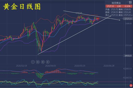 总的来讲(黄金后市走势前景展望):针对目前市场看跌美元的押注有所减少。本周美联储将发表密集讲话,特别是鲍威尔将在国会作证,因此,美联储的谨慎情绪重新占据主导,因为这将帮助美元企稳,而金价在美元走强的推动下料还将继续走低。黄金价格上周上涨2.6%,为4月10日以来的最好一周,原因是对疫情的担忧给经济复苏的希望蒙上了阴影。不过目前市场仍表现出一种等待的状态,金价多空没有明显的趋势信号,因此,辰逸凛也提醒投资者注意,继续观察疫情是否会出现第二波浪潮,而如果经济开始再次关闭,金价也可能会